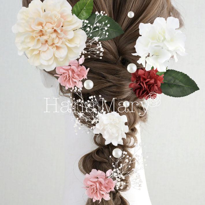 その日のヘアスタイルによって自由に一輪一輪配置できます。お花の数が多い場合でも、アメピンを追加して簡単にしっかりと固定できます。