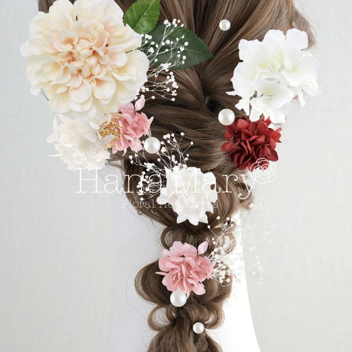 その日のヘアスタイルによって自由に一輪一輪配置できます。お花の数が多い場合でも、アメピンを追加して簡単にしっかりと固定できます。
