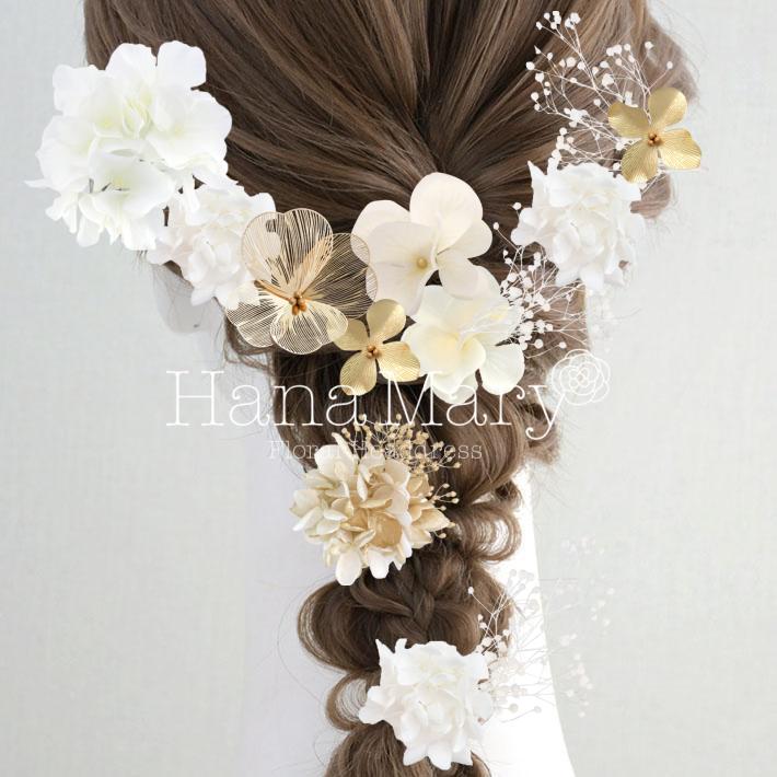 その日のヘアスタイルによって自由に一輪一輪配置できます。お花の数が多い場合でも、アメピンを追加して簡単にしっかりと固定できます。