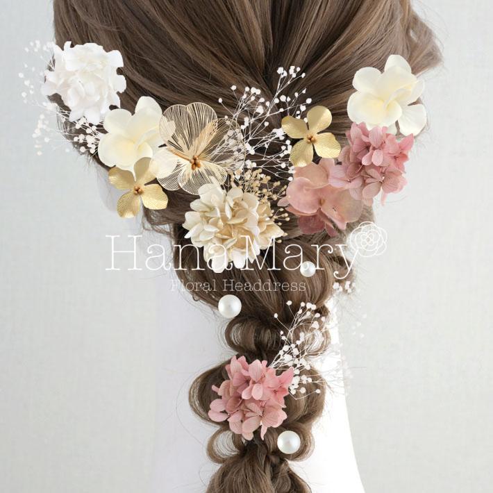 その日のヘアスタイルによって自由に一輪一輪配置できます。お花の数が多い場合でも、アメピンを追加して簡単にしっかりと固定できます。