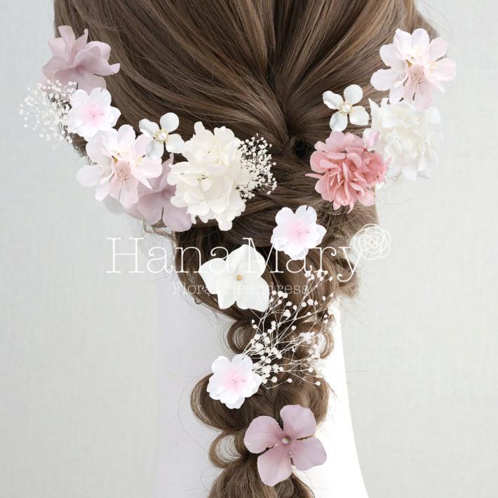 その日のヘアスタイルによって自由に一輪一輪配置できます。お花の数が多い場合でも、アメピンを追加して簡単にしっかりと固定できます。