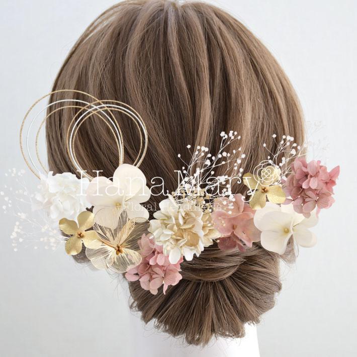 HanaMaryの髪飾りは生花をリアルに再現したアートフラワーと呼ばれるハイクオリティーな造花を使用しています。耐久性に優れ、成人式・卒業式やウェディングなどに何度でも繰り返し使用することができます。