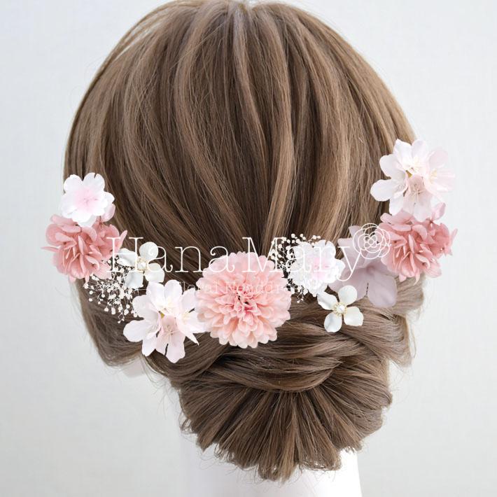 その日のヘアスタイルによって自由に一輪一輪配置できます。お花の数が多い場合でも、アメピンを追加して簡単にしっかりと固定できます。