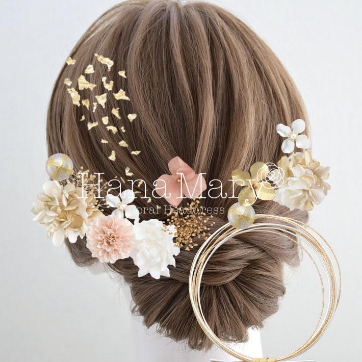 HanaMaryの髪飾りは生花をリアルに再現したアートフラワーと呼ばれるハイクオリティーな造花を使用しています。耐久性に優れ、成人式・卒業式やウェディングなどに何度でも繰り返し使用することができます。