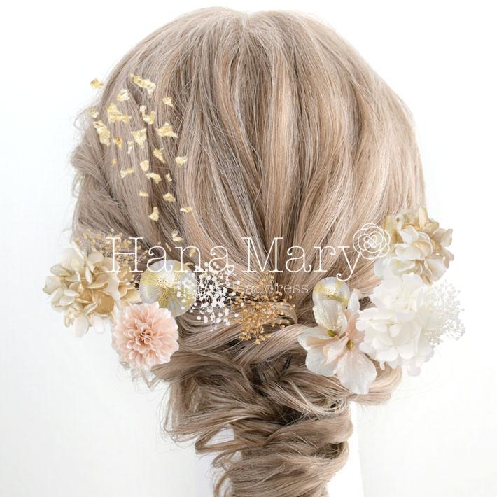 その日のヘアスタイルによって自由に一輪一輪配置できます。お花の数が多い場合でも、アメピンを追加して簡単にしっかりと固定できます。