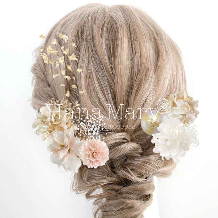 その日のヘアスタイルによって自由に一輪一輪配置できます。お花の数が多い場合でも、アメピンを追加して簡単にしっかりと固定できます。