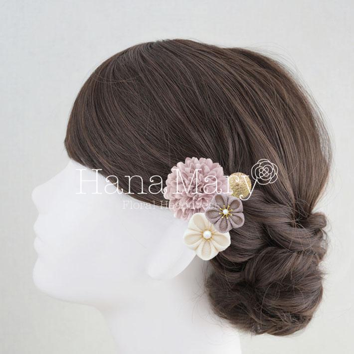 その日のヘアスタイルによって自由に一輪一輪配置できます。お花の数が多い場合でも、アメピンを追加して簡単にしっかりと固定できます。