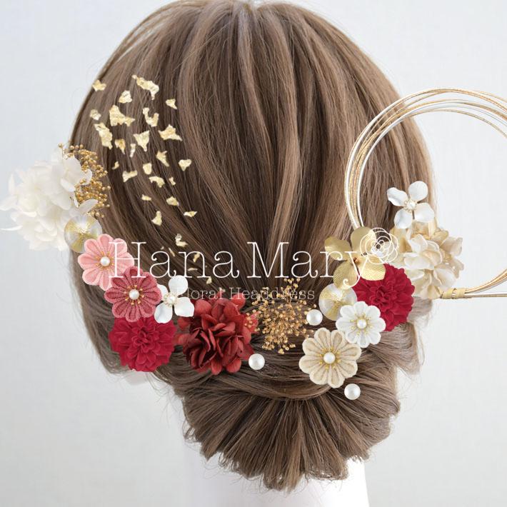 HanaMaryの髪飾りは生花をリアルに再現したアートフラワーと呼ばれるハイクオリティーな造花を使用しています。耐久性に優れ、成人式・卒業式やウェディングなどに何度でも繰り返し使用することができます。