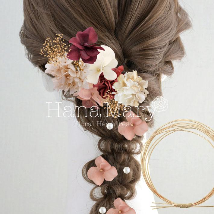 HanaMaryの髪飾りは生花をリアルに再現したアートフラワーと呼ばれるハイクオリティーな造花を使用しています。耐久性に優れ、成人式・卒業式やウェディングなどに何度でも繰り返し使用することができます。