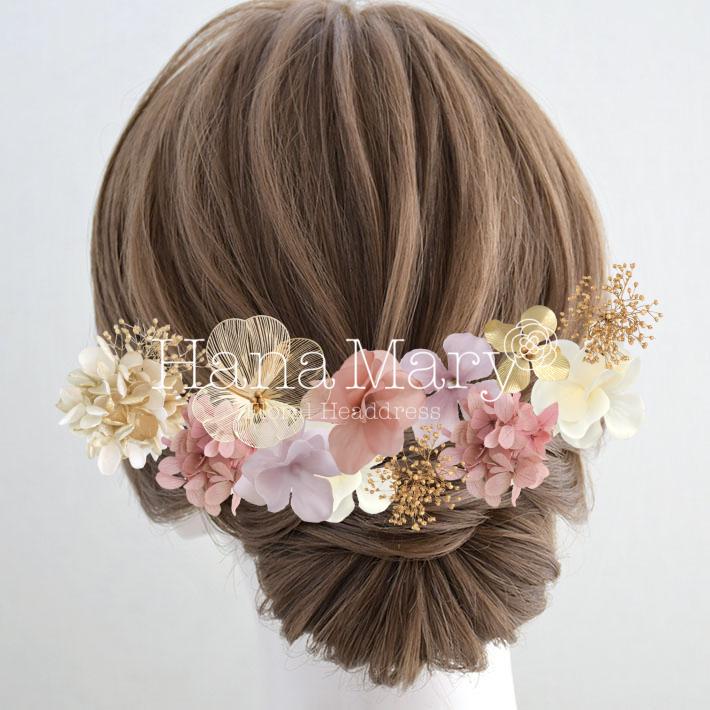 その日のヘアスタイルによって自由に一輪一輪配置できます。お花の数が多い場合でも、アメピンを追加して簡単にしっかりと固定できます。