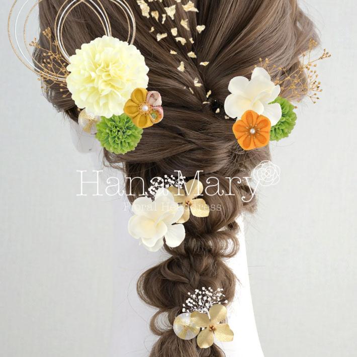 HanaMaryの髪飾りは生花をリアルに再現したアートフラワーと呼ばれるハイクオリティーな造花を使用しています。耐久性に優れ、成人式・卒業式やウェディングなどに何度でも繰り返し使用することができます。