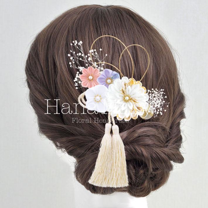 つまみ細工 M:和柄白