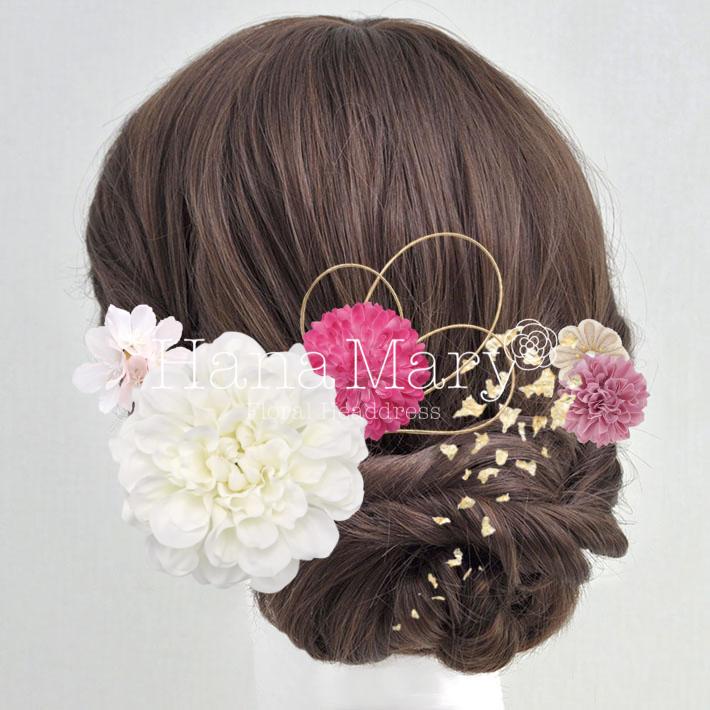 その日のヘアスタイルによって自由に一輪一輪配置できます。お花の数が多い場合でも、アメピンを追加して簡単にしっかりと固定できます。