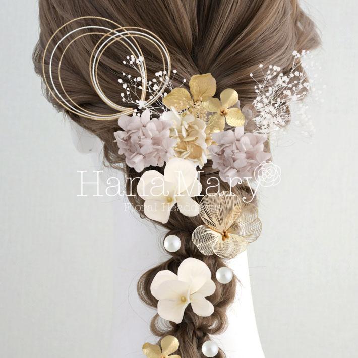 HanaMaryの髪飾りは生花をリアルに再現したアートフラワーと呼ばれるハイクオリティーな造花を使用しています。耐久性に優れ、成人式・卒業式やウェディングなどに何度でも繰り返し使用することができます。