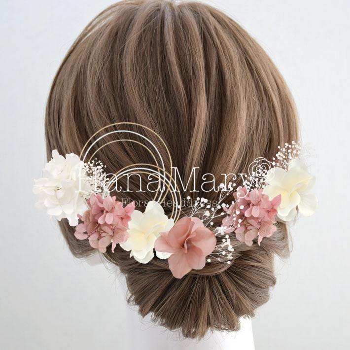 その日のヘアスタイルによって自由に一輪一輪配置できます。お花の数が多い場合でも、アメピンを追加して簡単にしっかりと固定できます。