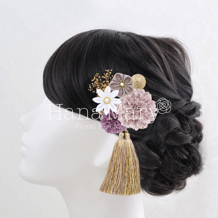 HanaMaryの髪飾りは生花をリアルに再現したアートフラワーと呼ばれるハイクオリティーな造花を使用しています。耐久性に優れ、成人式・卒業式やウェディングなどに何度でも繰り返し使用することができます。