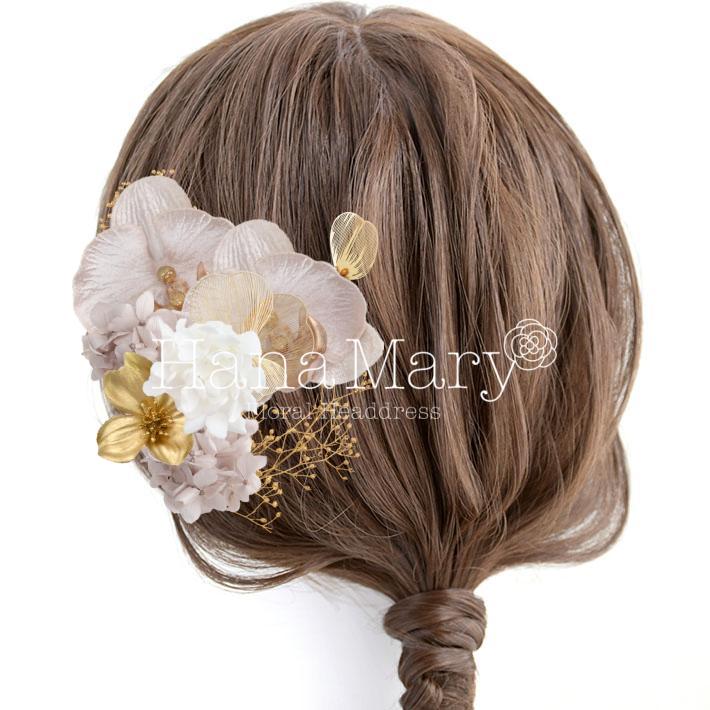 HanaMaryの髪飾りは生花をリアルに再現したアートフラワーと呼ばれるハイクオリティーな造花を使用しています。耐久性に優れ、成人式・卒業式やウェディングなどに何度でも繰り返し使用することができます。