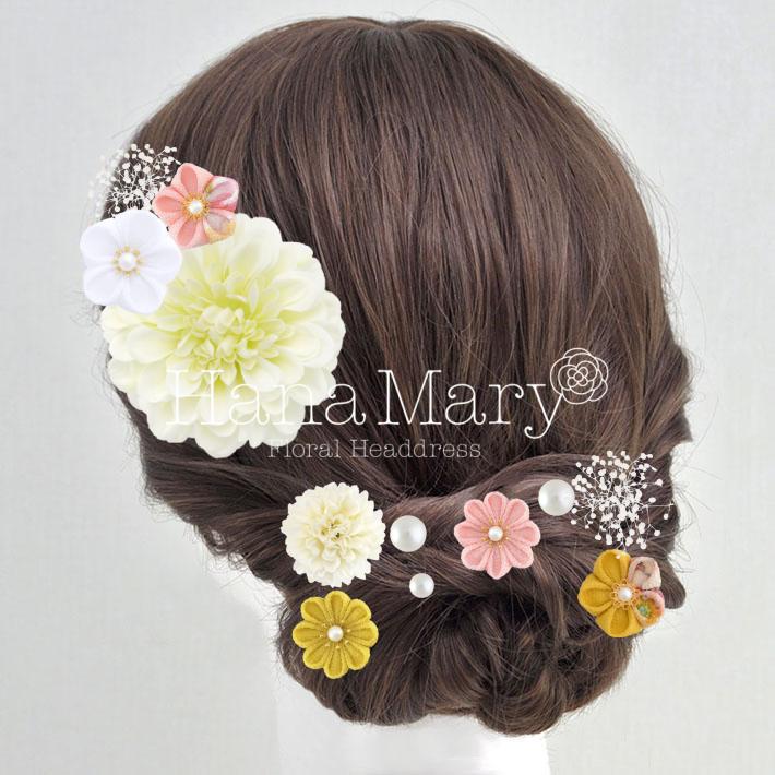 HanaMaryの髪飾りは生花をリアルに再現したアートフラワーと呼ばれるハイクオリティーな造花を使用しています。耐久性に優れ、成人式・卒業式やウェディングなどに何度でも繰り返し使用することができます。