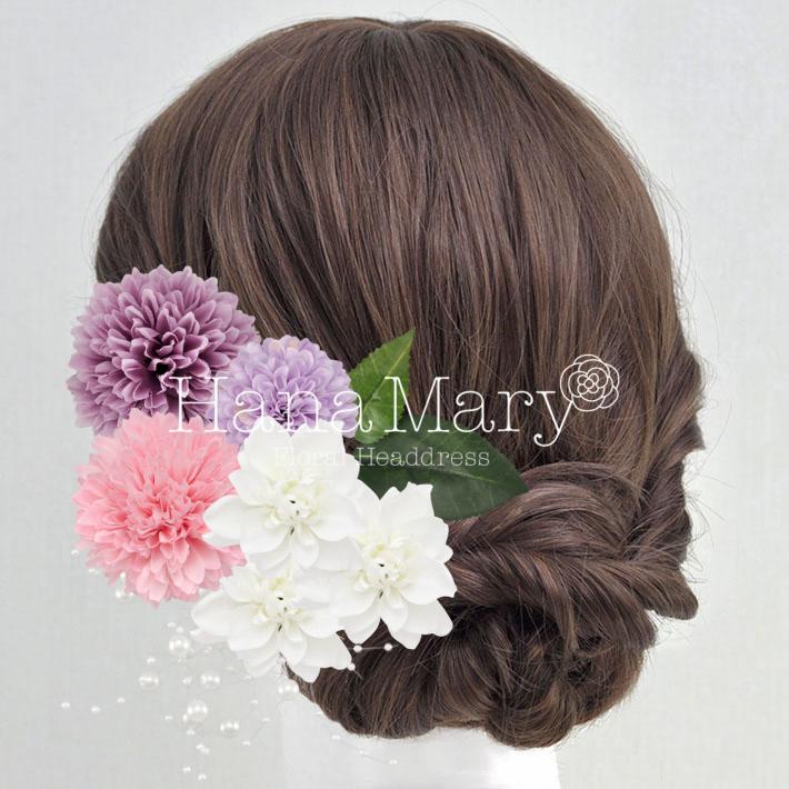 その日のヘアスタイルによって自由に一輪一輪配置できます。お花の数が多い場合でも、アメピンを追加して簡単にしっかりと固定できます。