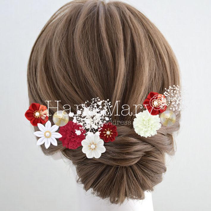 つまみ細工 白&赤