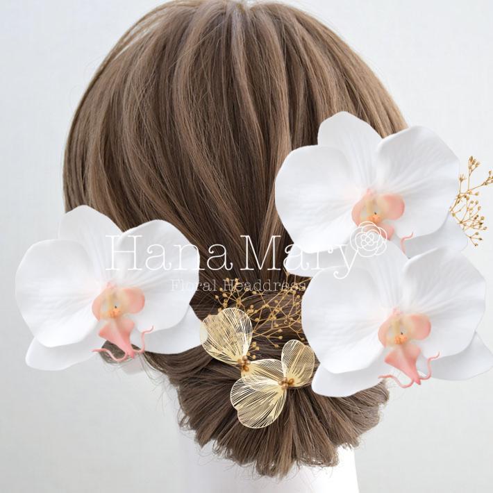その日のヘアスタイルによって自由に一輪一輪配置できます。お花の数が多い場合でも、アメピンを追加して簡単にしっかりと固定できます。
