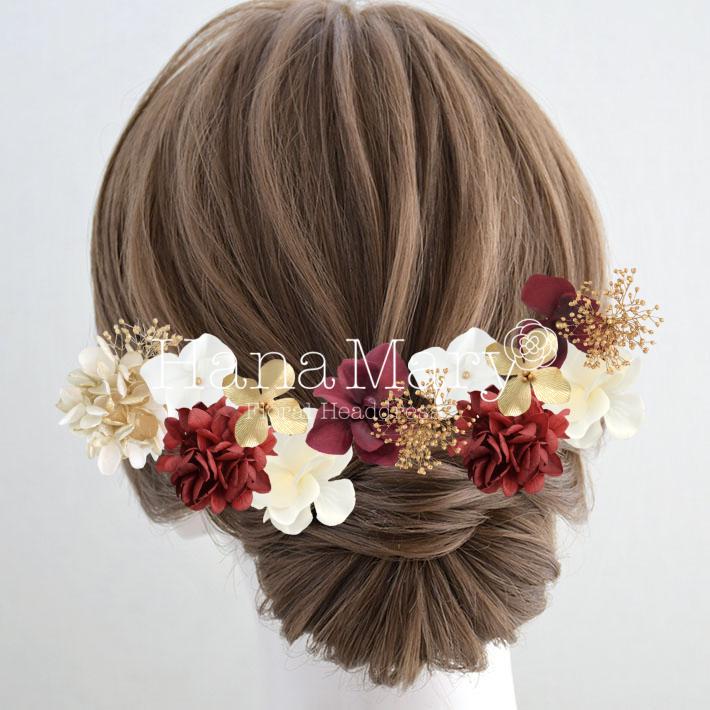HanaMaryの髪飾りは生花をリアルに再現したアートフラワーと呼ばれるハイクオリティーな造花を使用しています。耐久性に優れ、成人式・卒業式やウェディングなどに何度でも繰り返し使用することができます。