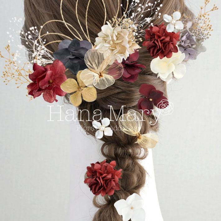 HanaMaryの髪飾りは生花をリアルに再現したアートフラワーと呼ばれるハイクオリティーな造花を使用しています。耐久性に優れ、成人式・卒業式やウェディングなどに何度でも繰り返し使用することができます。