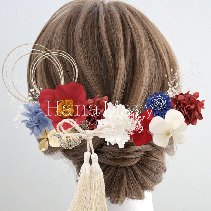 HanaMaryの髪飾りは生花をリアルに再現したアートフラワーと呼ばれるハイクオリティーな造花を使用しています。耐久性に優れ、成人式・卒業式やウェディングなどに何度でも繰り返し使用することができます。