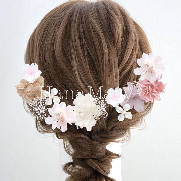 その日のヘアスタイルによって自由に一輪一輪配置できます。お花の数が多い場合でも、アメピンを追加して簡単にしっかりと固定できます。