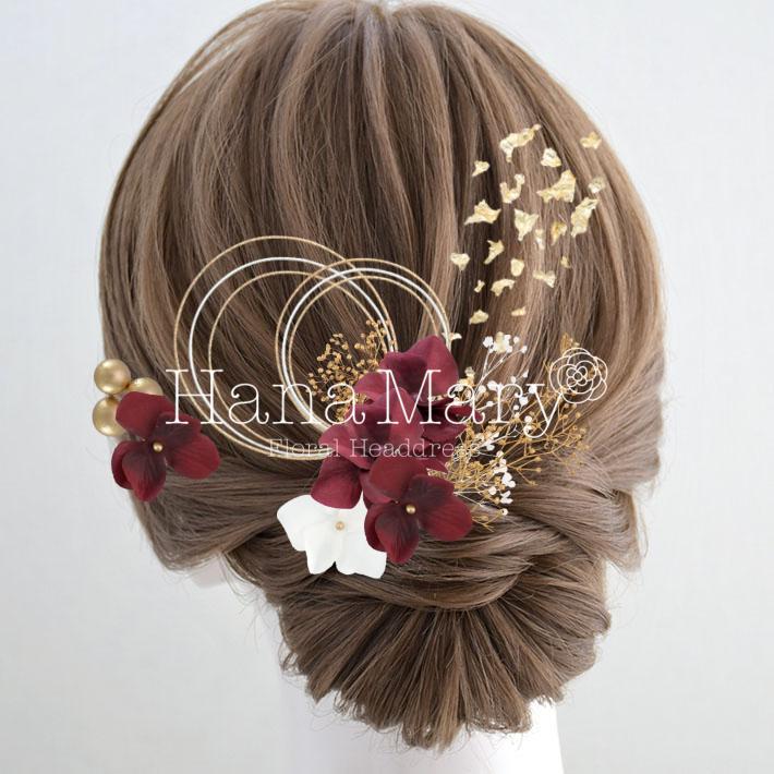 HanaMaryの髪飾りは生花をリアルに再現したアートフラワーと呼ばれるハイクオリティーな造花を使用しています。耐久性に優れ、成人式・卒業式やウェディングなどに何度でも繰り返し使用することができます。
