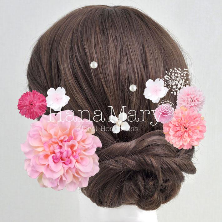 その日のヘアスタイルによって自由に一輪一輪配置できます。お花の数が多い場合でも、アメピンを追加して簡単にしっかりと固定できます。
