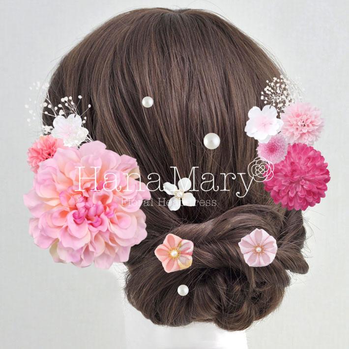 その日のヘアスタイルによって自由に一輪一輪配置できます。お花の数が多い場合でも、アメピンを追加して簡単にしっかりと固定できます。