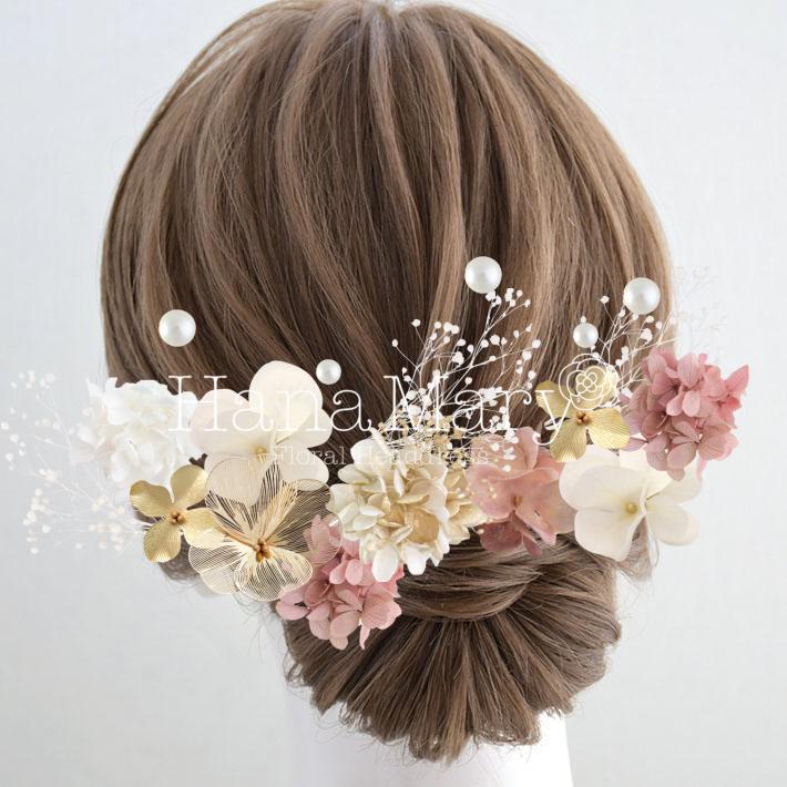 その日のヘアスタイルによって自由に一輪一輪配置できます。お花の数が多い場合でも、アメピンを追加して簡単にしっかりと固定できます。