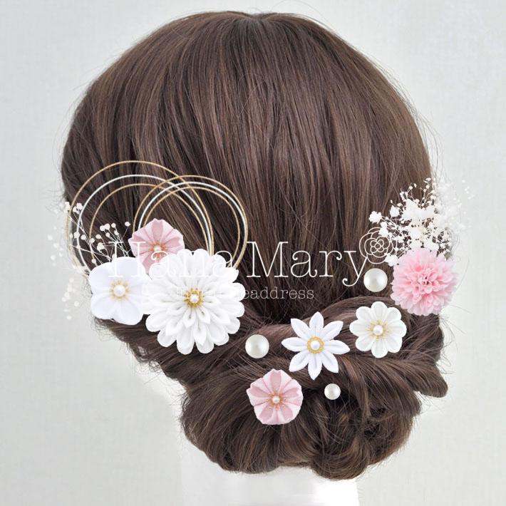 その日のヘアスタイルによって自由に一輪一輪配置できます。お花の数が多い場合でも、アメピンを追加して簡単にしっかりと固定できます。