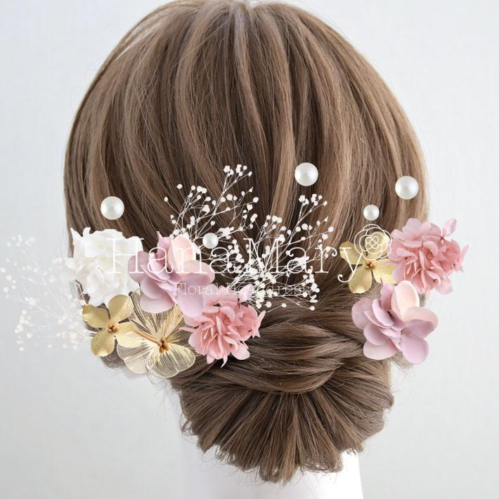 その日のヘアスタイルによって自由に一輪一輪配置できます。お花の数が多い場合でも、アメピンを追加して簡単にしっかりと固定できます。