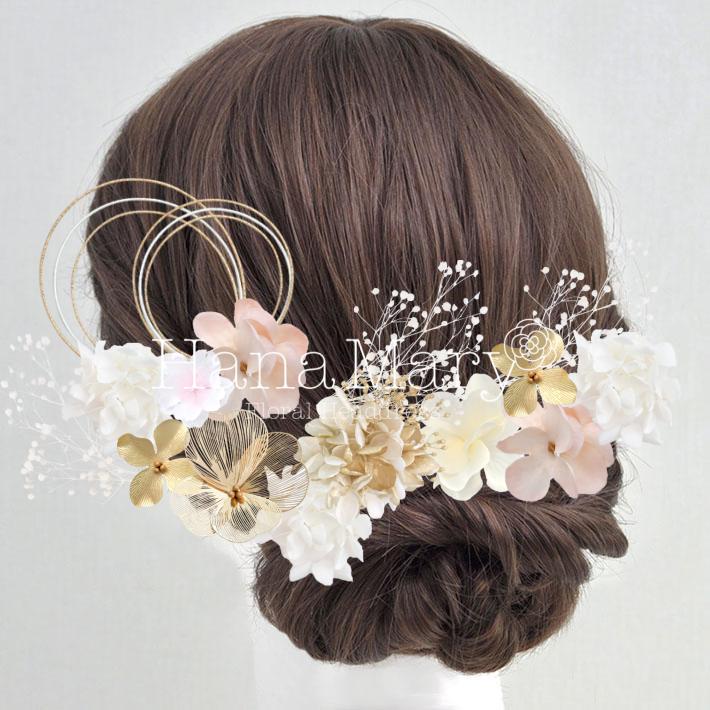 HanaMaryの髪飾りは生花をリアルに再現したアートフラワーと呼ばれるハイクオリティーな造花を使用しています。耐久性に優れ、成人式・卒業式やウェディングなどに何度でも繰り返し使用することができます。