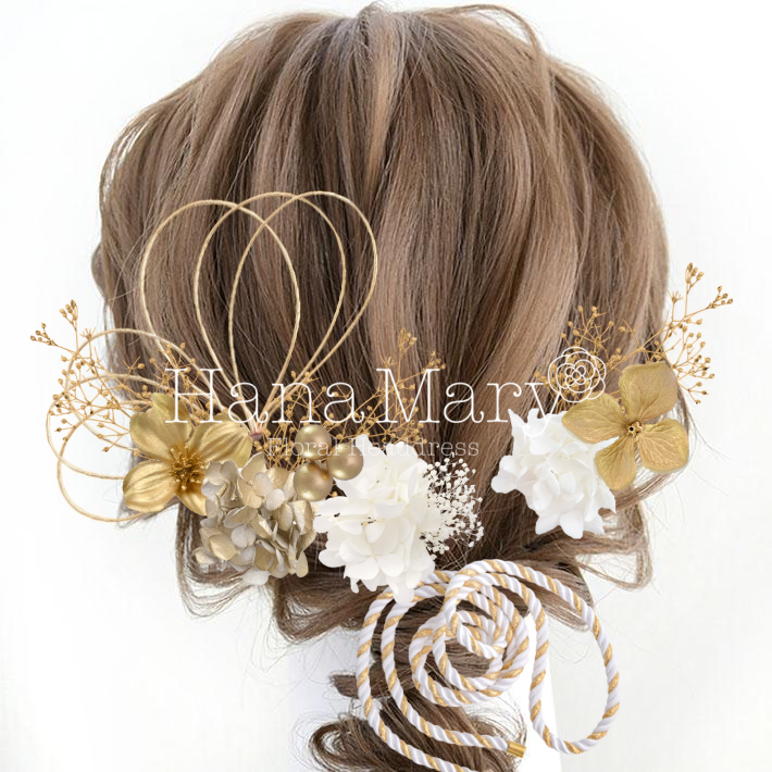ゴールドアジサイとカスミソウ
