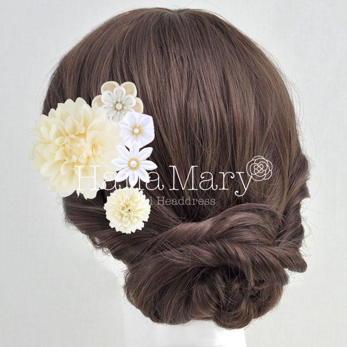マムとかすみ草の髪飾り