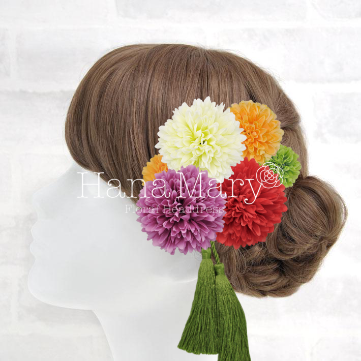 白いダリアと紫マムの可憐な髪飾り