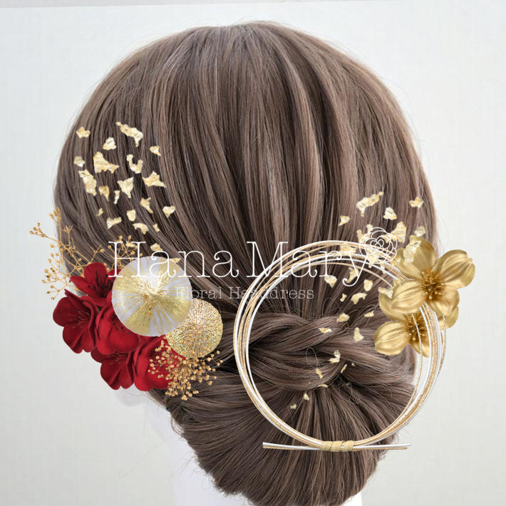 ダリアとつまみ細工【晴れやか】成人式 卒業式 結婚式 髪飾り